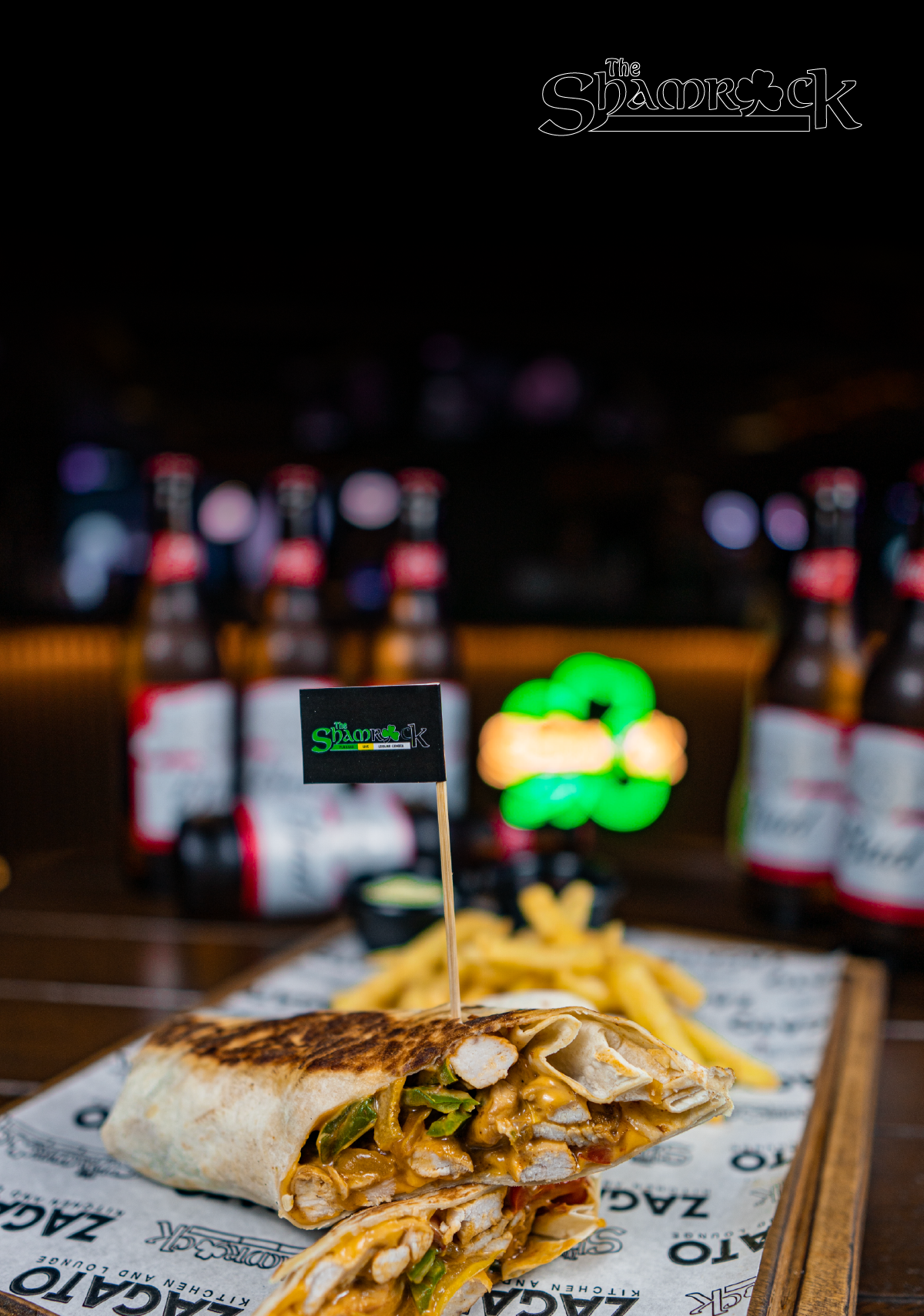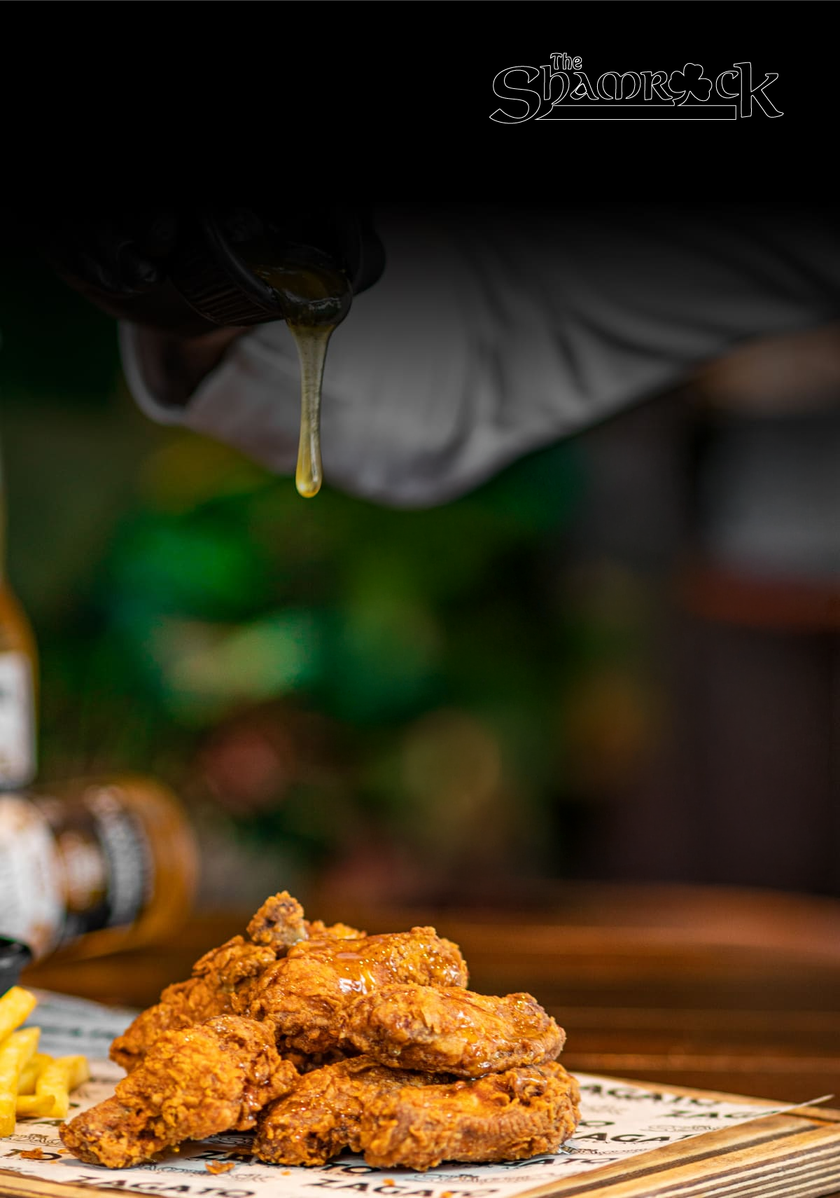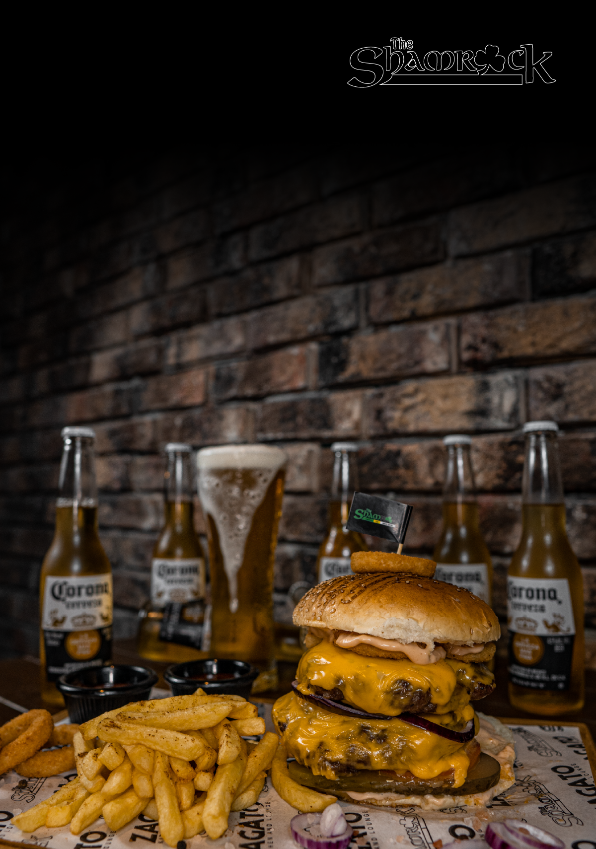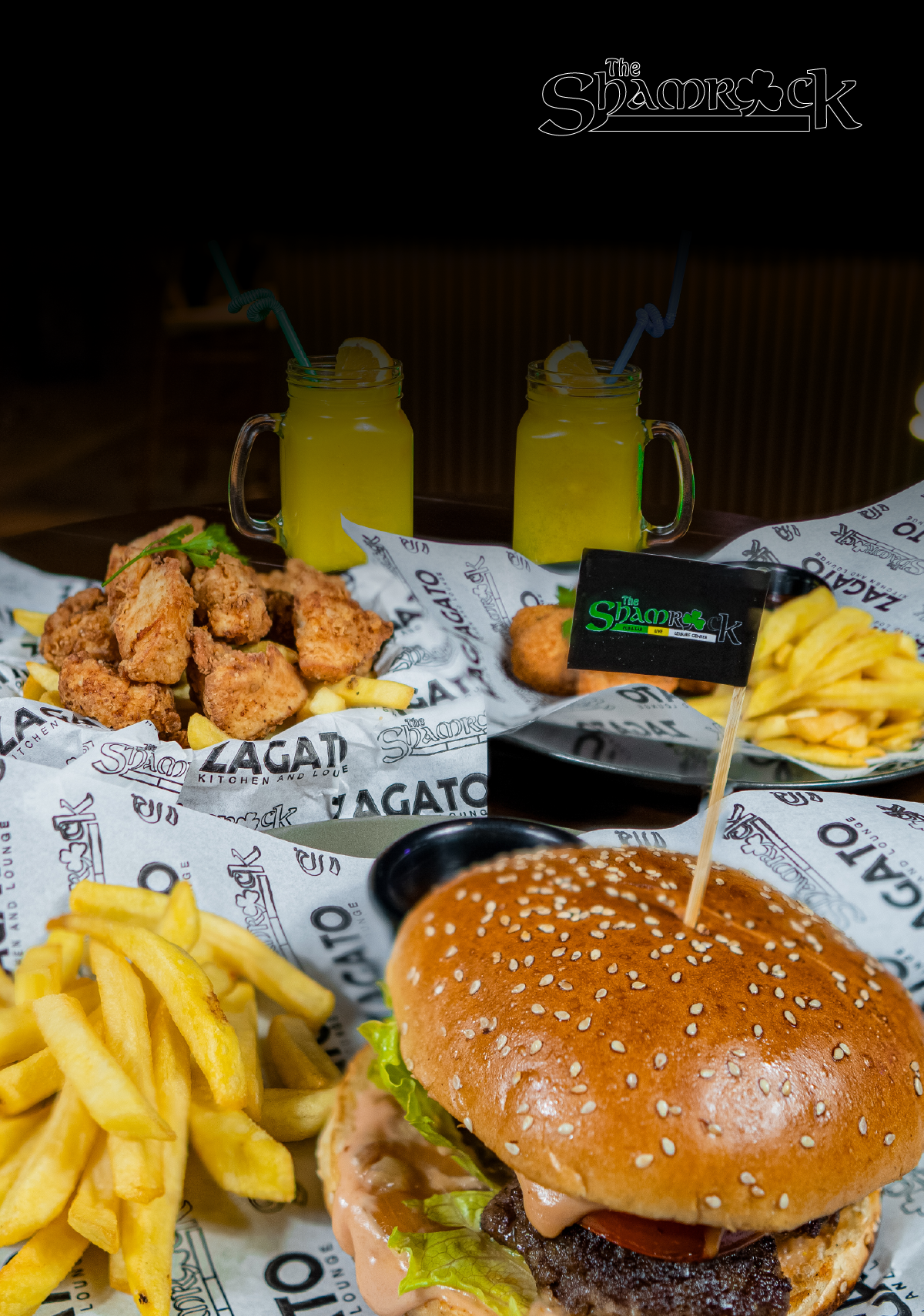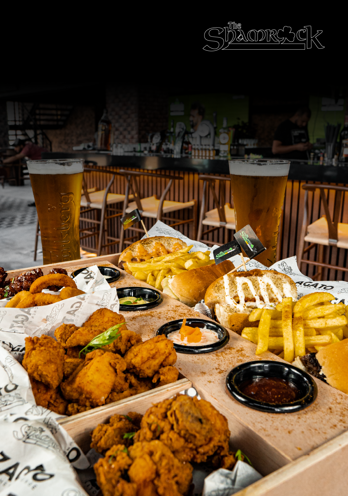 Cheeseburger, Popchicken, Buffalo Wings, Patates Kızartması, Soğan Halkası, Ananas Sos, Yeşil Sos, Chutney Sos, Barbekü Sos.