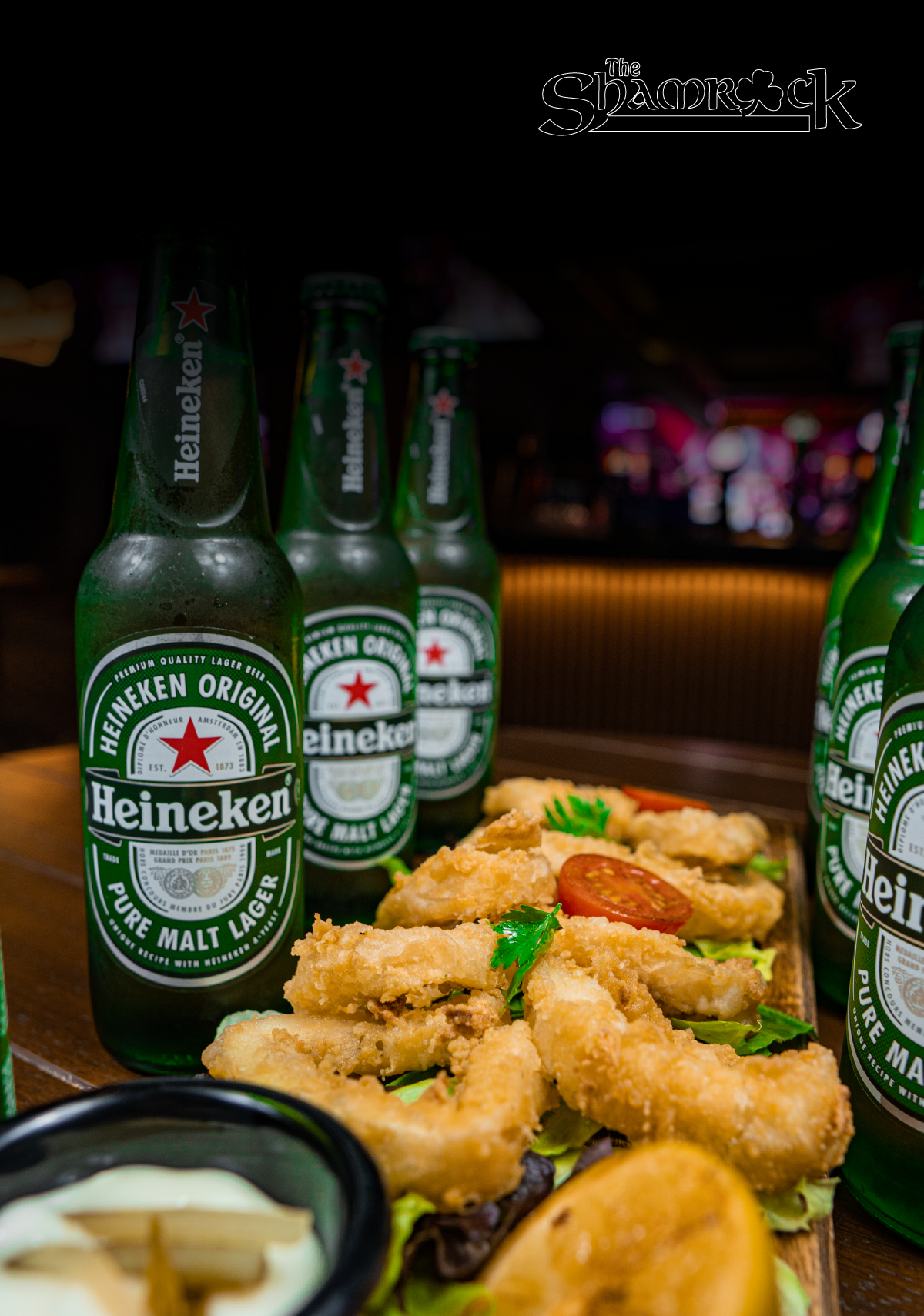 Çıtır Kalamar Halkaları, Tartar Sos, Roka Demeti. (Crispy Calamari Rings, Tartar Sauce, Bunch of Rocket.)