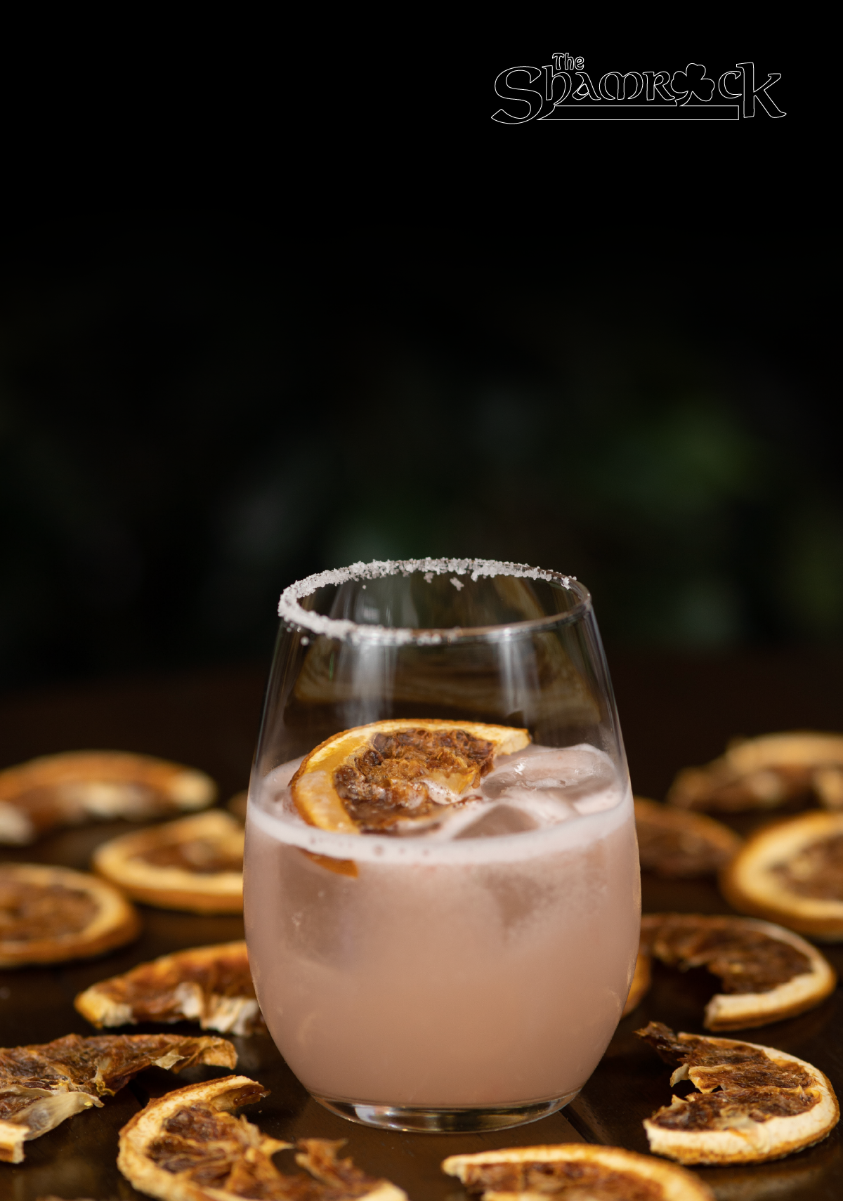 Infused Grapefruit Peel with Tequila, St.German Elderflower Liquer, Passion Fruit Puree, Citrus Blend Sweet & Sour Mix, Vegan Cocktail Foamer, Orange Bitter.