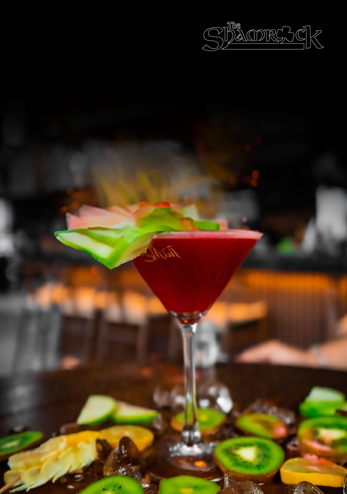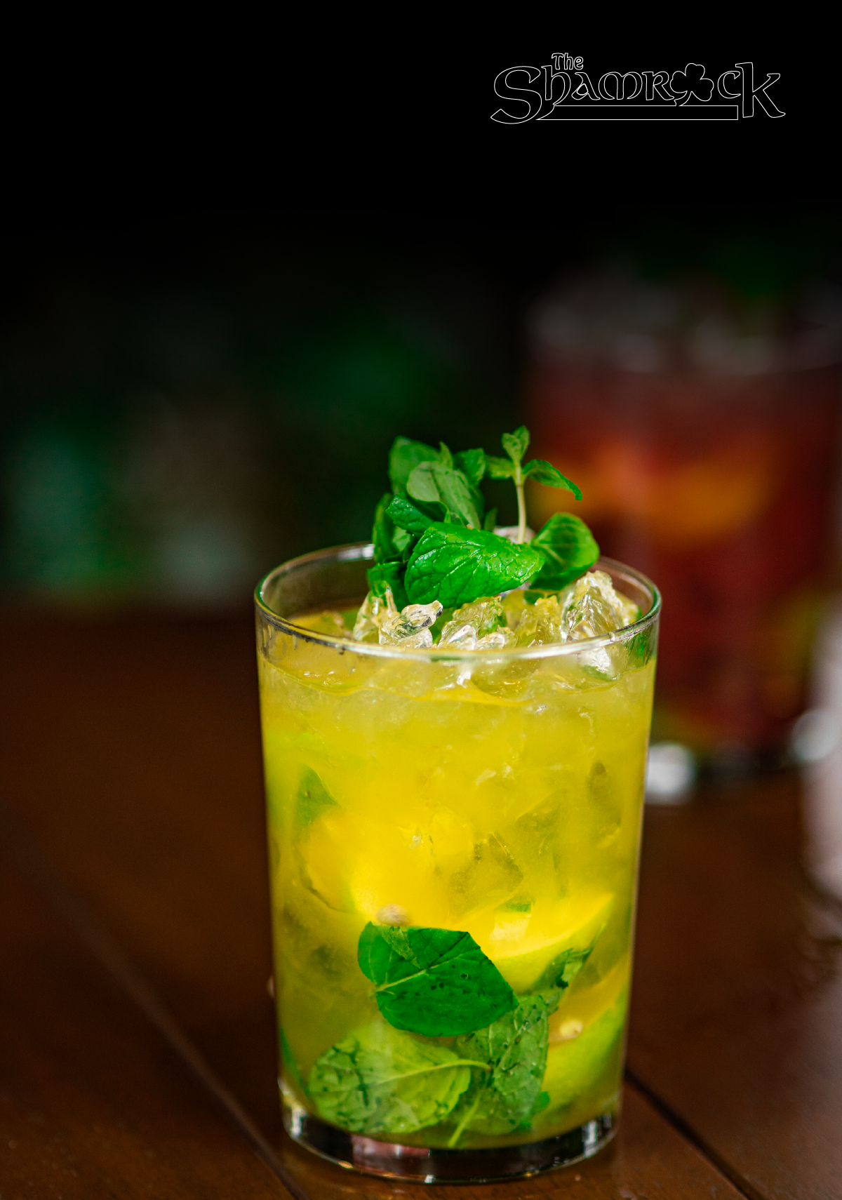 Infused Grapefruit Peel Malf Gin, Skinoss Mastic Liquer, Fresh Green Apple, Fresh Sorrel Leaf, Cucumber, Citrus Blend Sweet & Sour Mix, Earl Grey Bittter, Vegan Cocktail Foamer.