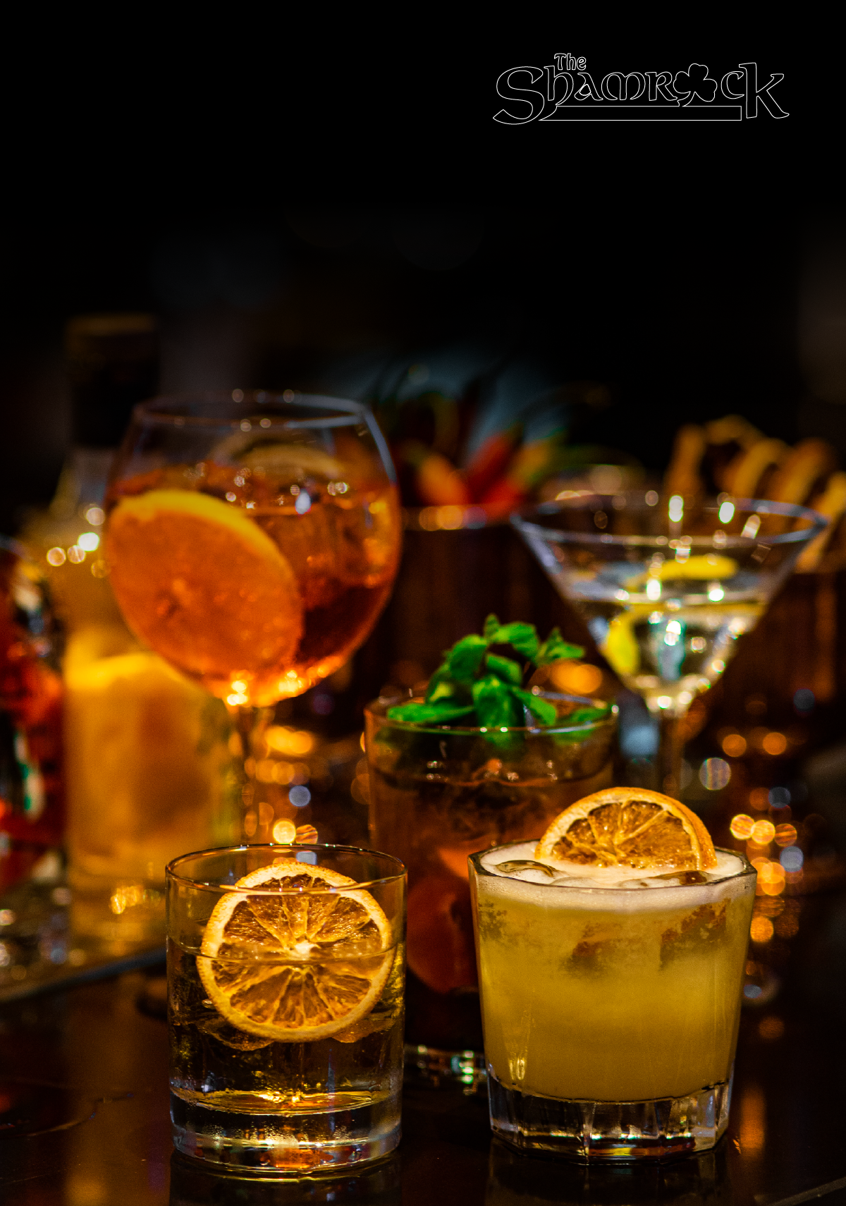 Jameson Cask Mates Whisky, Amaretto Liquer, Mango Pure, Vanilla Bitter, Angastura Bitter, Citrus Blend Sweet & Sour Mix, Orange Bitter, Vanilla Bitter, Vegan Cocktail Foamer, with Pine Nuts.