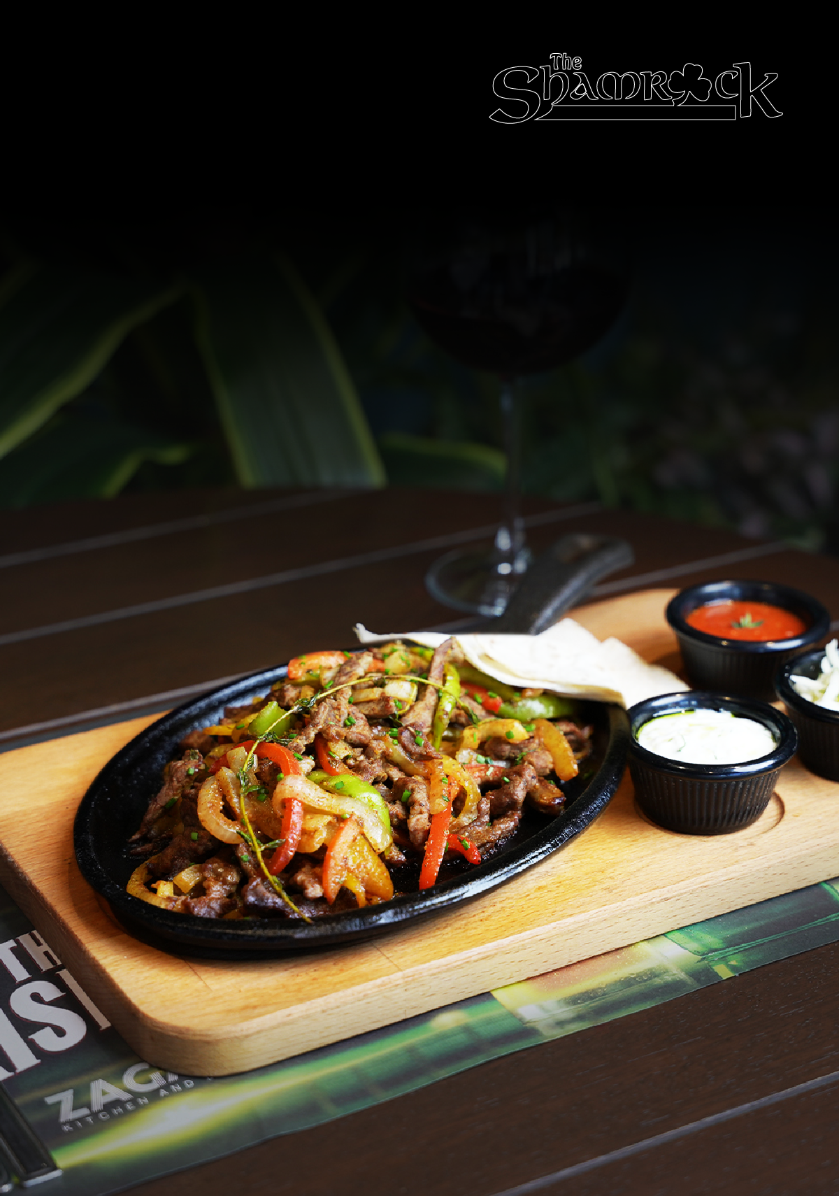 Dana Eti, Kaliforniya Biberleri, Kırmızı Soğan, Domates Sosu, Meksika Sosu, Peynir, Mısır Sosu.